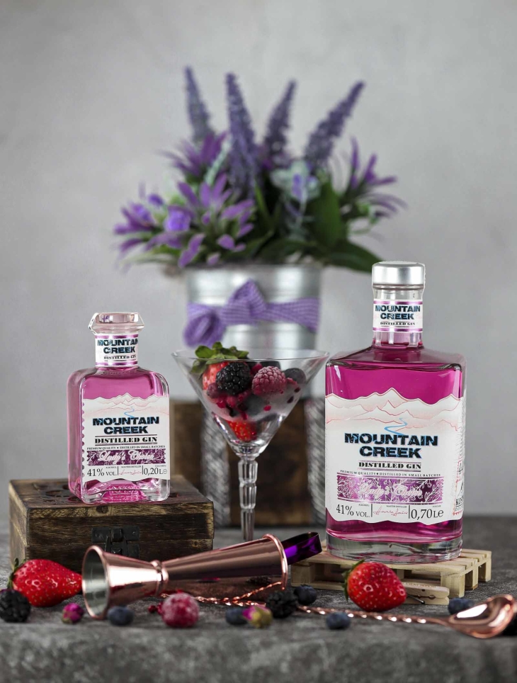 Nakon dugogodišnjeg iskustva u proizvodnji rakija i likera, 2020. godine na tržište smo plasirali premium brand craft ginova pod nazivom Mountain Creek Gin. Posebnost naših ginova čini proizvodnja od 29 vrsta različitog bilja, premium žitnog alkohola, te prirodne izvorske vode sa obronaka prvog hrvatskog geoparka – Geoparka Papuk.