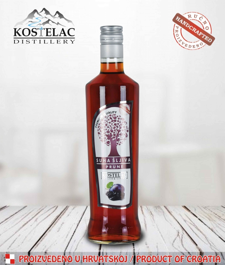 Kostelac Liker suha šljiva – Kostelac Liker suha šljiva vrhunski je liker, bogatog voćnog okusa i mirisa. Nakon berbe, šljive se prirodno suše na zraku, te se nakon sušenja sortiraju i stavljaju na višemjesečnu maceraciju u vrhunski destilat (rakiju). Nakon odležavanja, macerat se odvaja, a ostatak suhih šljiva se destilira. Takav destilat (rakija) miješa se sa maceratom i sirupom. Nakon prirodnog taloženja i sazrijevanja, rezultat je liker vrhunskog okusa i arome, a posebno će nas ugrijati u hladnim zimskim danima. Poslužuje se ledeno ohlađen.