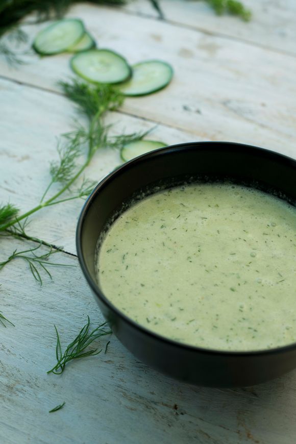 Predlažemo servirati u čašama i ukrasiti korom krastavca.