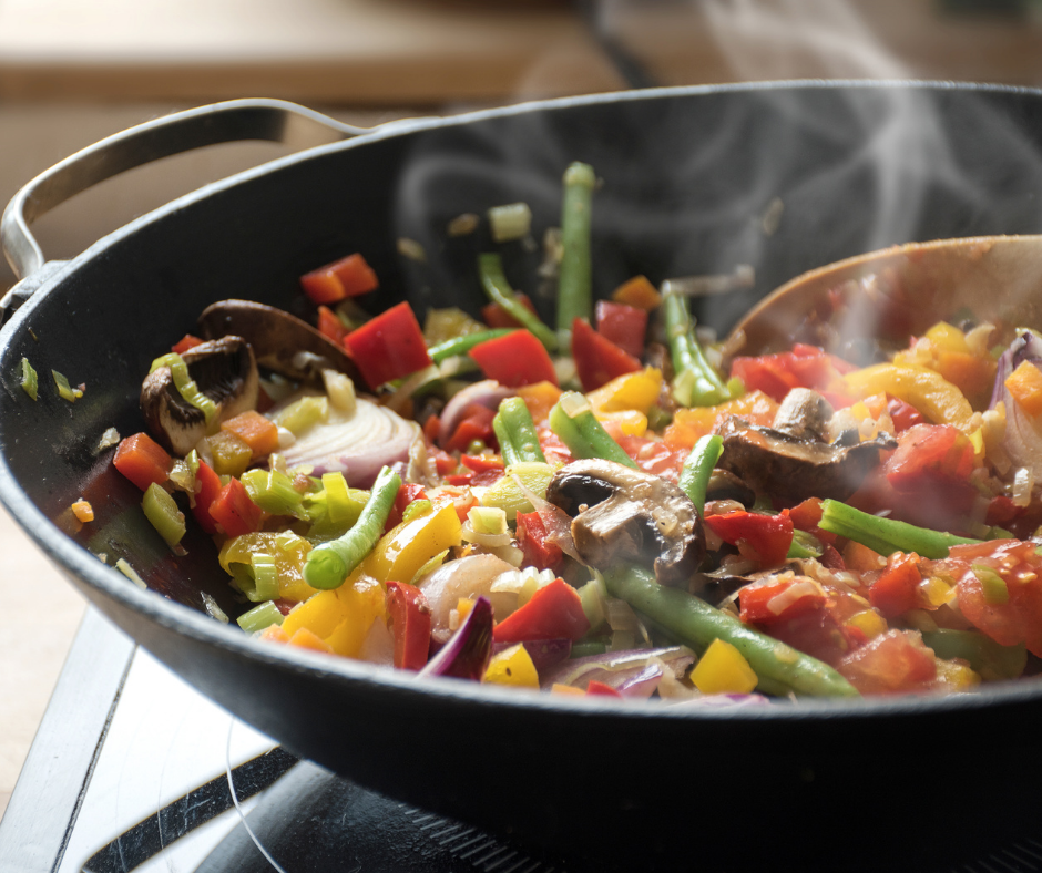 6. Kad je piletina spremna izvadite ju iz woka. Ubacite povrće i postite ga par minuta. Po potrebi dodajete ulje.