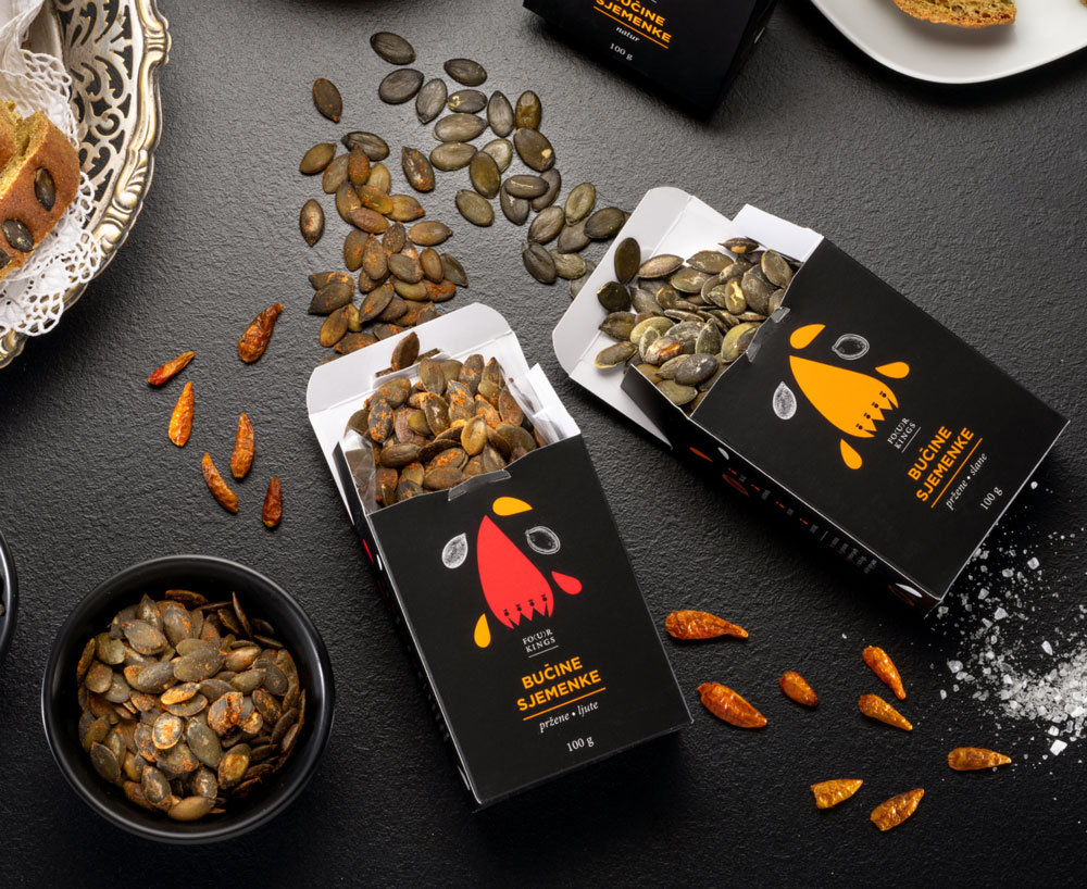 Krumpir i buču narezati na kockice i staviti kuhati u posoljenu vodu da potpuno omekša. Procijediti i dodati maslac, FO(U)R KINGS Namaz od bučinih sjemenki original, FO(U)R KINGS bučine sjemenke natur i FO(U)R KINGS bučino ulje djevičansko. Dobro izgnječiti drobilicom za pire.