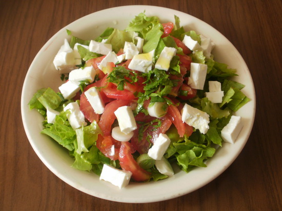 Krastavac, sir, grejp, luk, ljutu papričicu i vlasac dobro izmješamo i stavimo u male posudice.